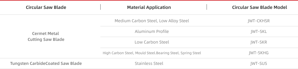 Corresponding Table of Cutting Diameter and Number of Teeth